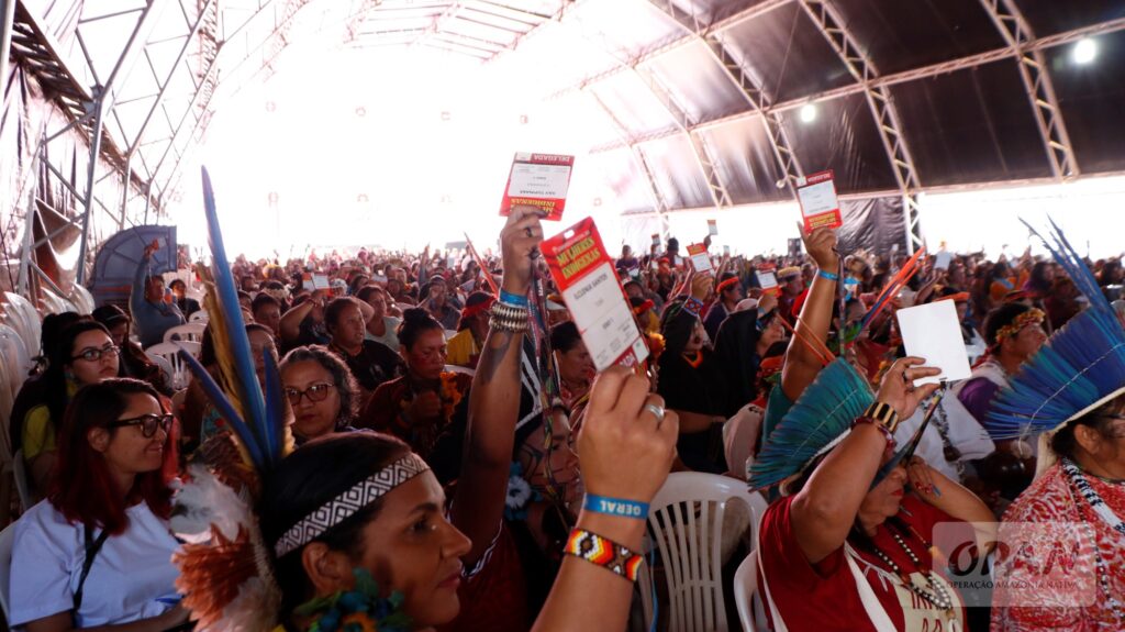 The vote on the proposal at the first National Conference of the Women of the Indigenous population. Photo: Talita Oliveira/OPAN